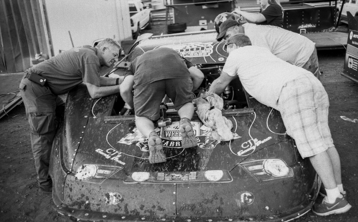That tradition plays out in dirt track stadiums now. Drivers invest thousands of dollars into their cars, tires, replacement parts, and trailers to compete. The winning prize is cash, but never enough to cover the costs. Like the moonshine drivers before them, it’s all about racing, family, and tradition—fellowship.